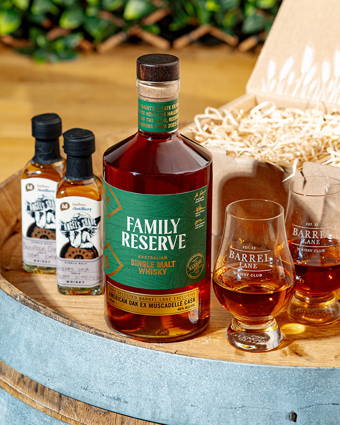 Each box includes a full-size (700ml) bottle of premium Australian whisky, our exclusive Barrel Lane Magazine with tasting notes and distillery stories, and occasional extras like glassware or bonus drams—always curated with care.